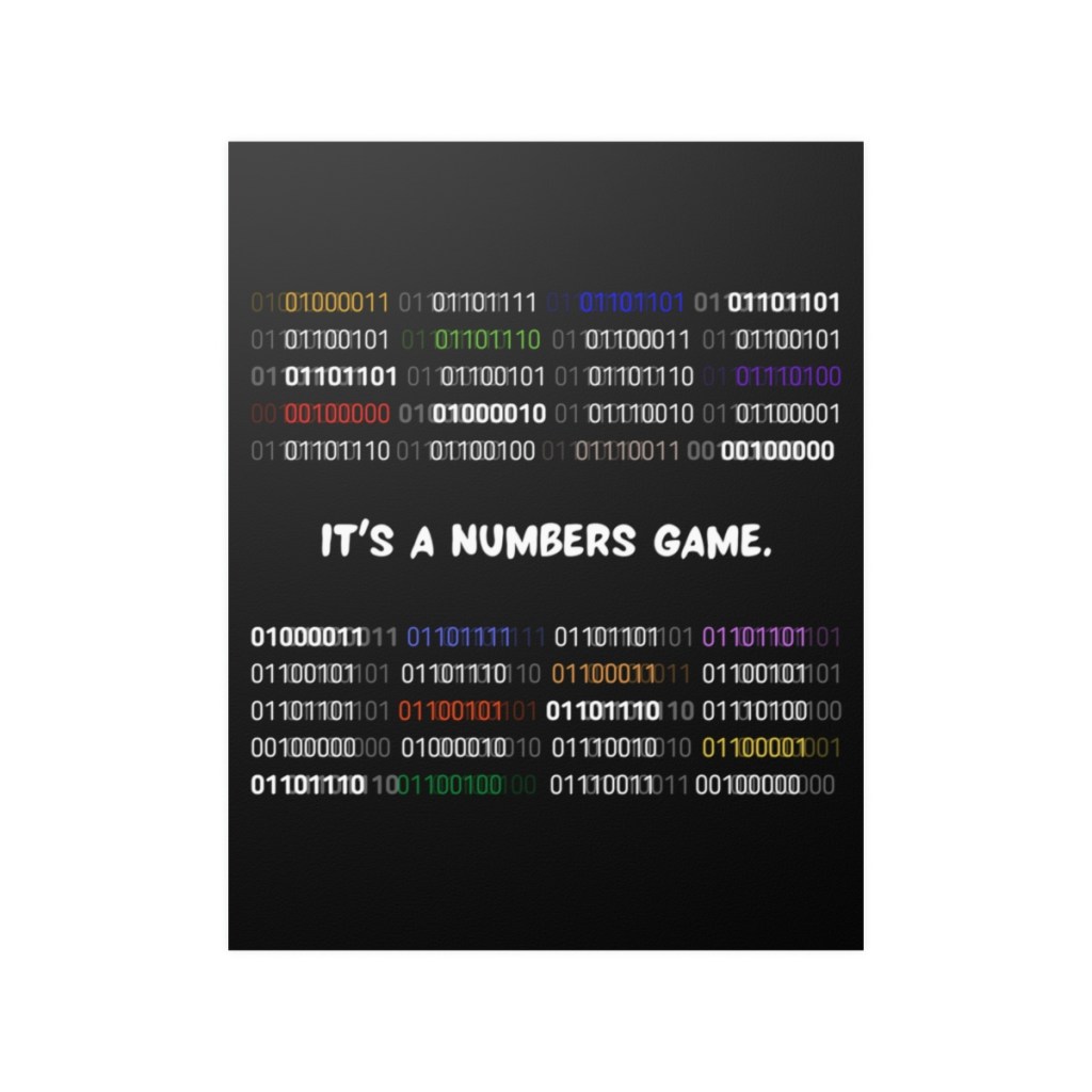 It’s binary code in style. This design is available as a poster, shirt, and sticker